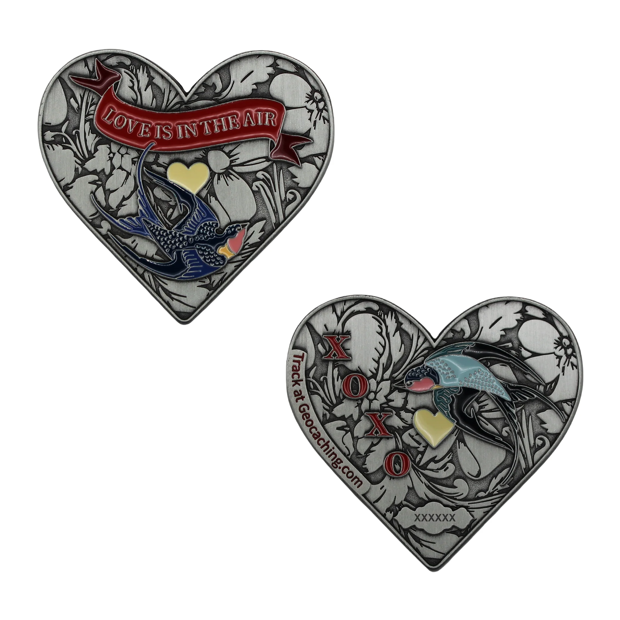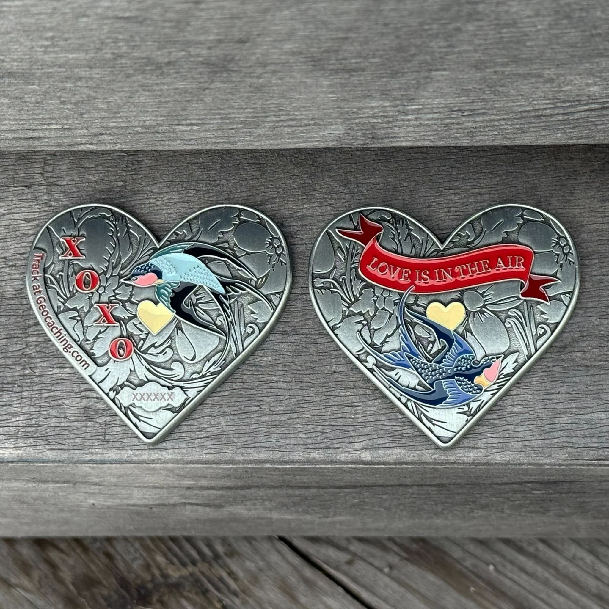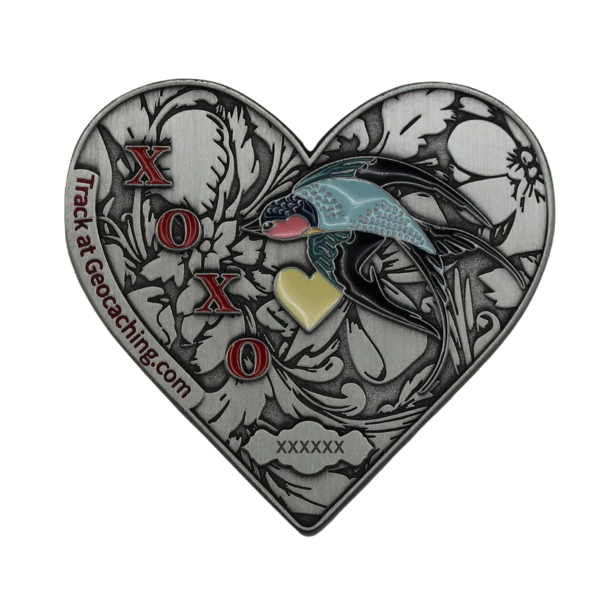 Iščete geodarilo za Valentinovo ali Gregorjevo? Geolovko ali geolovca svojega srca lahko očarate s tem priložnosti primernim geokovancem v obliki srca. Geokovanec »Lav iz Indije« (kar poglejte na YouTube 😂), na katerem ne majka rožic, ptičkov in srčkov, pa še kak 💋 se najde, ima zaključno obdelavo v barvi staranega srebra (Antique silver) in meri približno 5 x 5 cm. Zaloga pri dobavitelju kopni (bronasta različica je že razprodana), zato pohitite z naročilom. Dobava v drugi polovici marca.