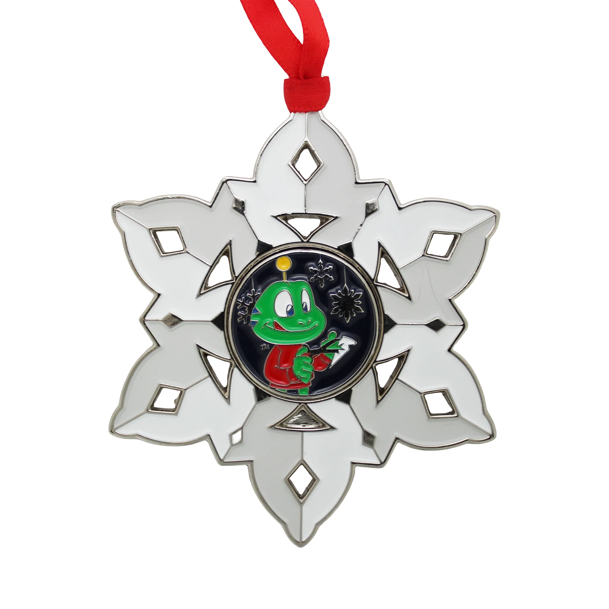 Privoščite svoji jelki (ali drevesu kake druge vrste manj zloveščega imena) nekaj geolovskega dekorja. S sledljivim okraskom poševnica geokovancem, seveda. Na izbiro imate dve različici z motivom Signala oziroma njegovega psa Trackerja (ja, v geolovski mitologiji imajo tudi žabe pse; ampak, če ima anteno, ima lahko tudi psa …). Rdeč trakec, s katerim ga boste obesili na najlepšo vejo, je seveda zraven. Pa sledilna koda, vgravirana na zadnji strani. Vse skupaj pride v lični žametoidni vrečki, kamor ga boste pospravili, ko bo šlo drevesce v organske odpadke.