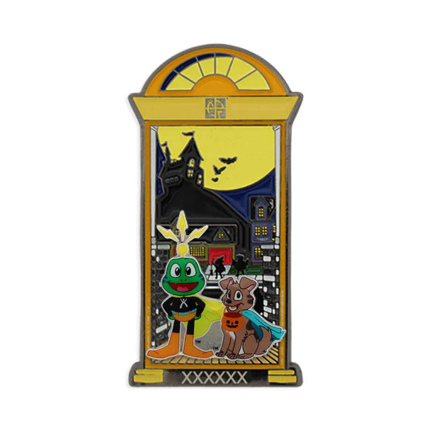 Noč čarovnic je mimo. V olajšanju, da ste jo preživeli brez strahu in groze, si lahko omislite ta edinstveni komplet dveh geokovancev. Večji geokovanec (visok skoraj 7 cm!) v obliki vhodnih vrat ima spredaj kajpak vrata, zadaj pa tematiki primeren motiv. Manjši geokovanec pa prikazuje Signala in njegovega kužka Trackerja v Trick-or-Treat opravi. Na voljo po naročilu. Dobavili ga bomo, ko bomo naslednjič dopolnjevali zaloge od dobavitelja v ZDA. Računamo, da bo to še letos, a tega še ne moremo potrditi.
